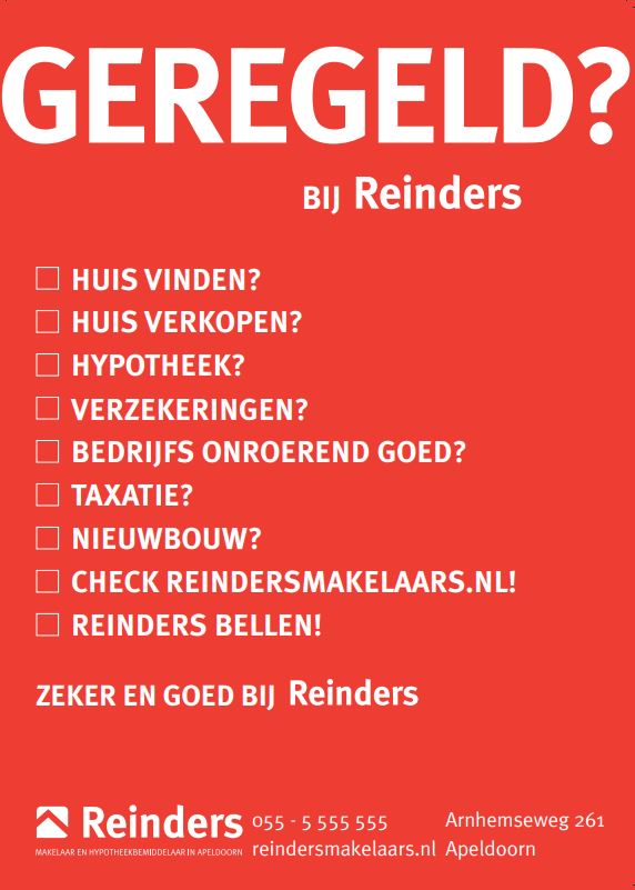 Aandacht krijgen. Alert antwoorden op uw vragen. Uw belletjes en mails direct opvolgen. Uw onzekerheid ondersteunen met feiten. Meeleven als het even tegenzit: het tot in de vingertoppen ervaren en gemotiveerde team van Reinders Huizen en Hypotheken, makelaar in Apeldoorn, is er 24/7 mee bezig. Vanuit ons hart voor ú, vanuit ons hoofd voor de beste deal…voor ú!